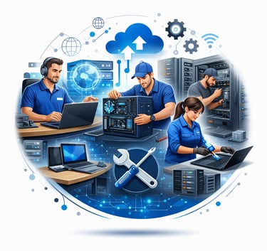 Consultoria em TI, Montagem, formatação, manutenção e limpeza de notebooks, computadores e servidores.