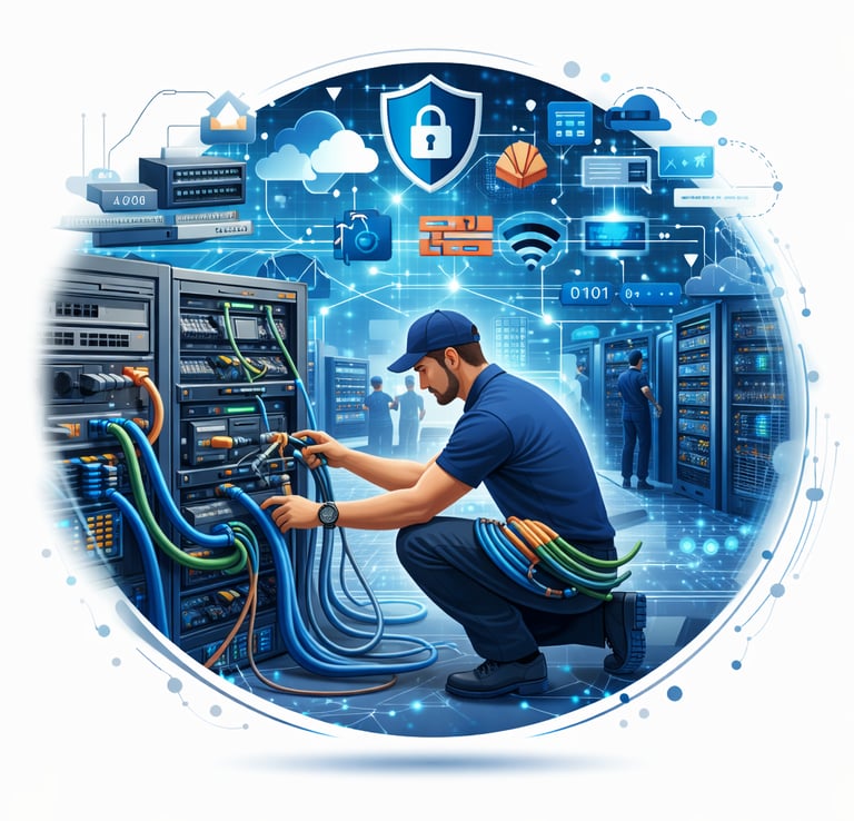 Infraestrutura de rede física e logica: Bloqueio de sites, roteamento, cabeamento estruturado, rede TCP/IP, WI-FI, firewall, proxy.